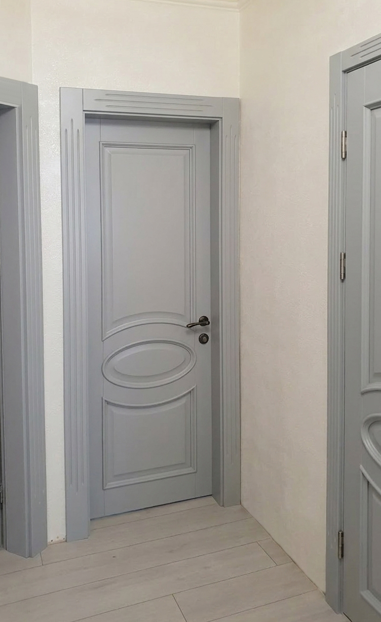 Міжкімнатні двері з масиву ясеня: Елегантність у відтінку Light Grey (RAL 7035)